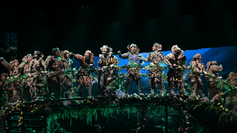 作为国家艺术基金双资助项目,《象北旅行》以2021年云南西双版纳野生亚洲象群北迁1300多公里的真实事件为蓝本,采用百老汇歌舞剧风格,通过拟人化的象群形象、跌宕起伏的剧情与童趣盎然的舞台呈现,讲述了“短鼻家族”在人类守护下重返家园的奇幻旅程。剧中巧妙融入生物多样性场景与生态文明理念,既展现了象群迁徙中的欢笑与感动,更传递出“人与自然生命共同体”的核心主旨,让观众在沉浸式体验中树立生态保护意识。