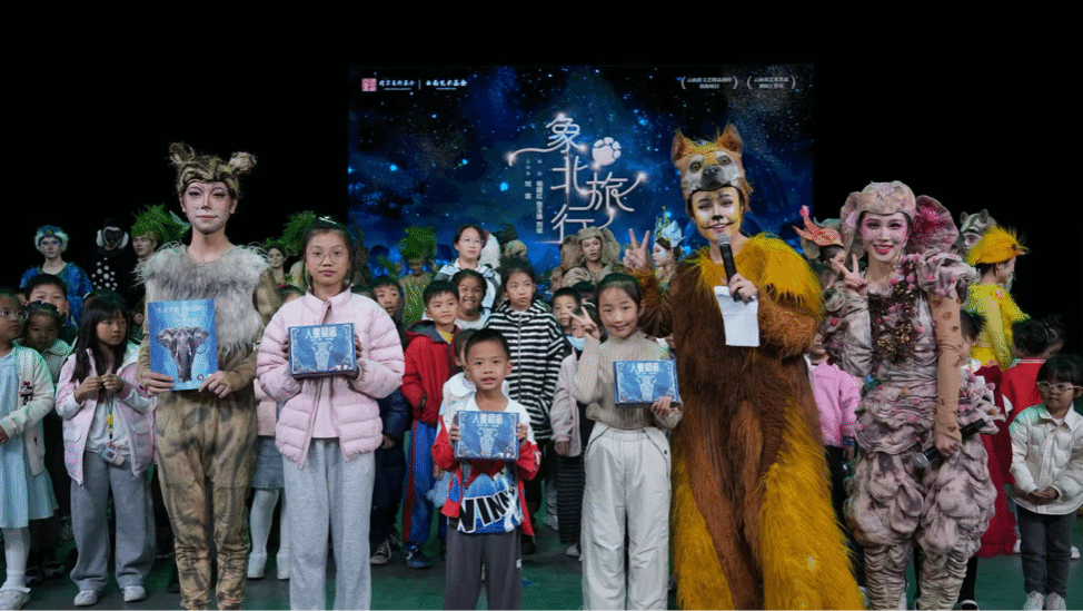 从西双版纳的原生故土到普洱的茶咖盛会,《象北旅行》的50场演出足迹遍布云南多地及全国多个城市。此前在亚洲象的故乡西双版纳演出时,该剧因还原象群迁徙的本土记忆、贴近地域生态特色,引发当地观众强烈共鸣,成为连接本土情感与生态教育的重要载体。截至目前,该剧已覆盖高校、中小学、基层社区及大型展会等多个场景,累计惠及观众超8万人次,先后斩获中国校园戏剧节“优秀剧目奖”等多项荣誉,更实现国家艺术基金大型舞台剧创作与传播交流推广双立项的突破性成就。