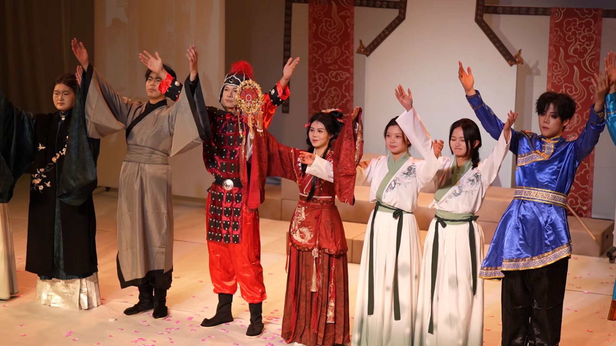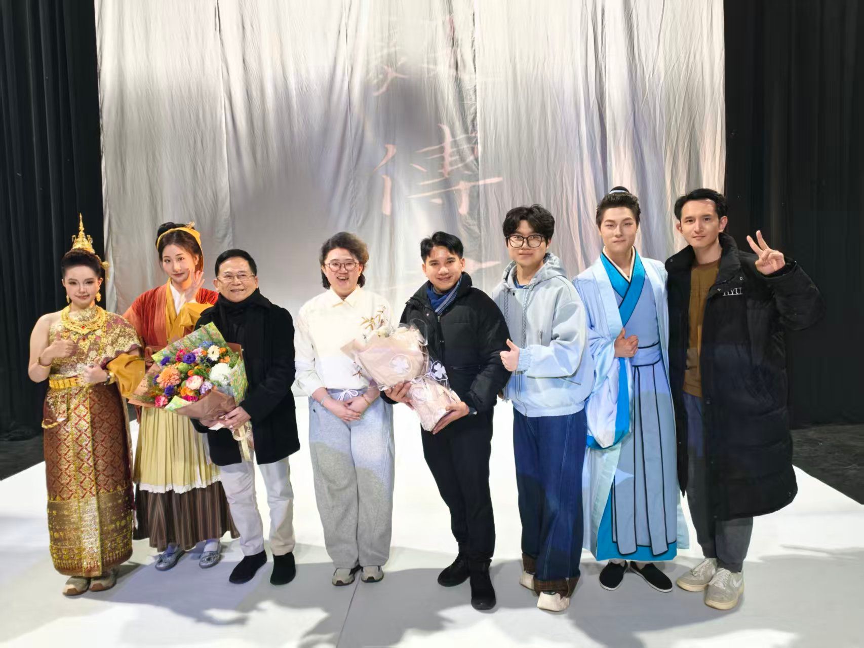 由青年教师姚又僮编剧、青年教师王菲导演的《木兰》,将中国北朝巾帼传奇与泰式艺术元素完美相融。泰国传统丝弦乐与中国民乐交织共鸣,泰式舞蹈的刚柔并济与中国戏曲的程式化动作无缝衔接,让木兰替父从军的家国情怀在双文化韵律中绽放。少年将军与木兰的琴笛和鸣,既延续了中国传统叙事的家国大义,又融入了泰国艺术对情感表达的细腻笔触,彰显了中泰戏剧元素创新融合的无限可能。