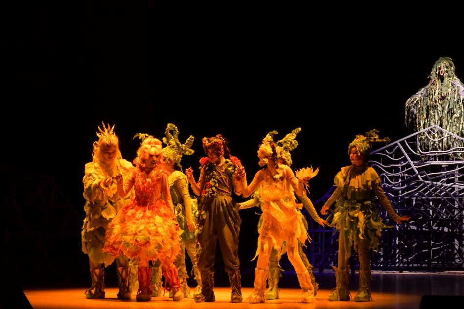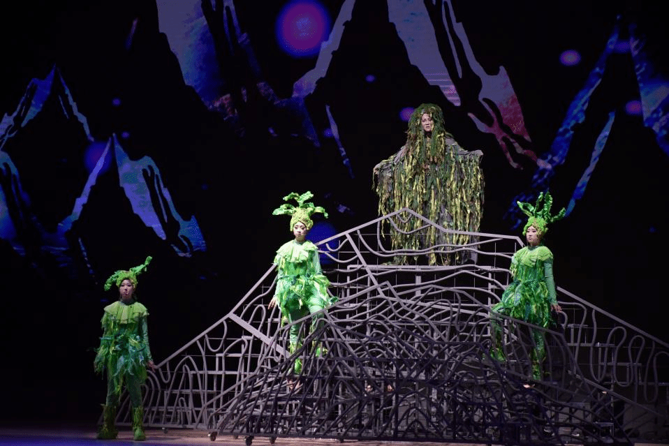 演员们通过精湛的演技和精美的舞台呈现,将观众带入一个充满奇幻色彩的高山世界,他们化身植物精灵走入观众席,向观众发出探寻自然的邀请,这种零距离的互动体验,配合空灵悠扬的原创配乐与层次丰富的灯光设计,共同构建出全方位、沉浸式的艺术场域。整场演出通过寓教于乐的方式,让台下师生不仅在视听上得到享受,更在情感与思想上深度共鸣,切实加深了师生们对生态文明理念的理解与认同,有效激发了他们保护生态环境的责任意识,促进了“以美育人、浸润心灵”的美育体验。