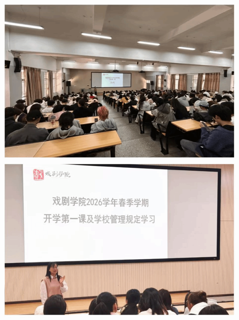 为全面贯彻党的教育方针,落实立德树人根本任务,新学期伊始,戏剧学院严格落实学校安全健康建设要求与统筹部署,全方位护航全体师生开启新学期逐梦之旅,凝聚戏剧育人奋进力量,组织开展了2026年春季学期“开学第一课”系列活动。