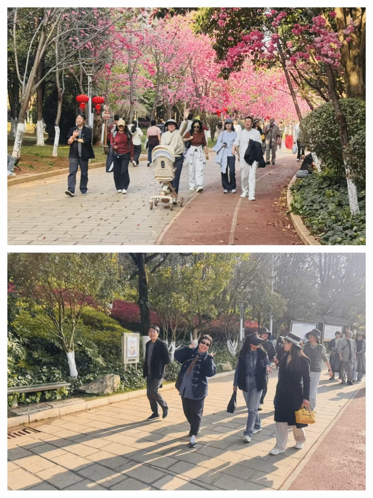 在“三八”国际妇女节来临之际,为丰富教职工文化生活,凝聚团队力量,3月5日,云南艺术学院戏剧学院组织全体教职工前往呈贡洛龙公园,开展以“春风沐芳华·健行向新程”为主题的健走赏樱活动,在烂漫春光中欢度节日。